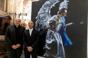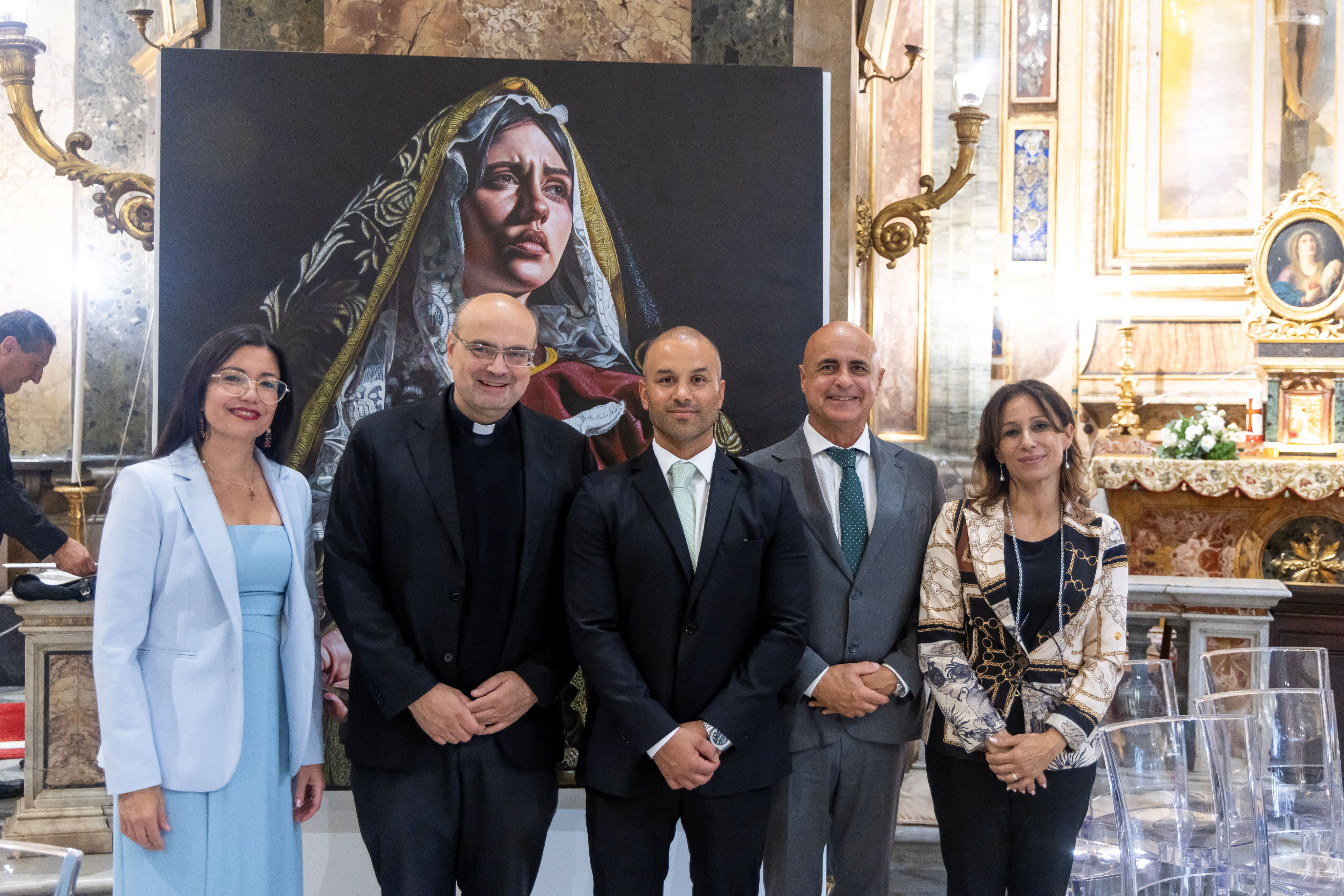 ROME, ROME, ITALY, October 14, 2025 /EINPresswire.com/ -- With a solemn Eucharistic celebration and the heartfelt participation of the faithful and representatives from the institutional world, the sacred art exhibition “Sublime” by Guatemalan painter Christian Escobar “Chrispapita” was inaugurated at the Church of the Most Holy Name of Mary at Trajan’s Forum. The exhibition has been officially recognized as an event of the Jubilee 2025 by the Dicastery for Evangelization. The event is also part of the Rome Art Week program, which runs from October 20 to 25, 2025.Promoted with the institutional support of SNAM, the patronage of the Lazio Region, and the financial contribution of Capillas Señoriales, the exhibition — open until January 6, 2026 — presents three monumental works executed in the traditional chiaroscuro technique: Saint Michael the Archangel, Saint Gabriel the Archangel, and Our Lady of Sorrows. Three powerful images that, through the interplay of light and shadow, lead the viewer on a journey of faith, contemplation, and beauty.
